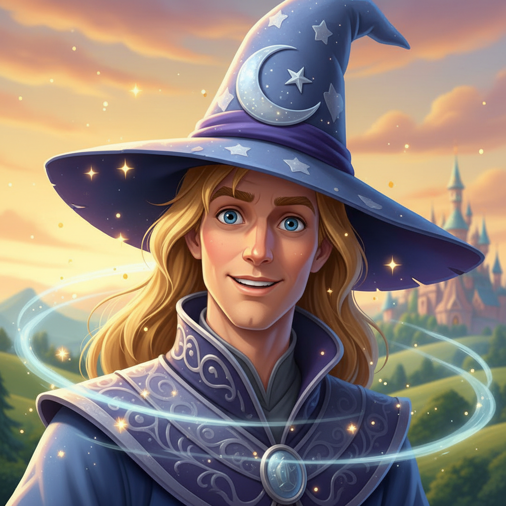 En un reino donde los arcoíris tocaban la hierba y las nubes olían a algodón de azúcar, vivía un pequeño mago llamado Crear Cuento. Tenía el cabello del color del sol más brillante y unos ojos tan azules como el cielo en un día despejado. Su piel era tan clara como la primera luz de la mañana. Aunque era solo un niño, su corazón latía con la magia más pura. Desde que era muy pequeño, Crear Cuento descubrió un don asombroso: la capacidad de volar. No necesitaba escobas ni alfombras voladoras; con solo pensarlo, sus pies se elevaban del suelo y surcaba el aire con la gracia de una mariposa. Esta habilidad lo hacía sentir libre y feliz, explorando los rincones más secretos del reino. Pasaba sus días volando sobre bosques frondosos, lagos cristalinos y montañas cubiertas de nieve. Observaba a los animales jugar, saludaba a las estrellas fugaces y recogía gotas de rocío para crear amuletos de buena suerte. Su risa resonaba en el viento, un sonido dulce que anunciaba su paso. Un día, mientras volaba cerca de las Montañas Susurrantes, escuchó un llanto tenue. Curioso, descendió con cuidado y encontró a una pequeña ardilla atrapada en una rama alta, asustada y sin poder bajar. La ardilla temblaba, sus ojitos brillaban con lágrimas. Sin dudarlo, Crear Cuento extendió su mano. El amor por todas las criaturas era tan fuerte en él como su magia. Su deseo de ayudar la impulsó a usar su poder de la manera más amable.
