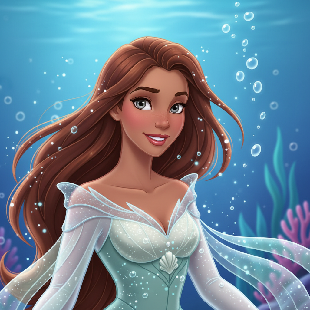 En el reino de Coralandia, vivía una joven princesa llamada Martina. Su cabello castaño caía en rizos suaves sobre sus hombros y sus ojos grises brillaban con la curiosidad de quien lo ve todo por primera vez. Martina tenía una piel oscura y hermosa, y su risa resonaba como el tintineo de las conchas marinas en la orilla. A diferencia de otras princesas, Martina guardaba un secreto maravilloso: poseía la habilidad de respirar bajo el agua tan fácilmente como lo hacía en tierra firme. Desde que era una bebé, Martina se sentía atraída por el mar. Pasaba horas en la playa, observando las olas y soñando con los misterios que albergaban las profundidades. Los caballeros del reino le contaban historias de sirenas y de barcos hundidos, pero Martina sabía que había algo más, algo que solo ella podría descubrir. Su corazón latía con fuerza ante la idea de explorar el vasto y azul mundo que se extendía más allá de la costa de su reino. Su amor por el océano era inmenso. A menudo, se escapaba del palacio para visitar los muelles, donde los pescadores compartían sus capturas y contaban leyendas sobre criaturas marinas extraordinarias. Martina escuchaba con atención cada palabra, imaginando los colores vibrantes de los corales y las formas elegantes de los peces que nadaban en bancos brillantes. La sal marina siempre le pareció más dulce que cualquier perfume del palacio. Los tutores de Martina se preocupaban por su inclinación al mar, intentando dirigir su atención hacia las artes de la corte, la diplomacia y la historia. Pero por más que lo intentaban, la llamada del océano era más fuerte. Ella sentía que su verdadero destino no estaba en los salones del castillo, sino en las corrientes tranquilas y profundas del mar, donde sentía una conexión única y poderosa. Un día, mientras jugaba cerca de una cueva marina poco explorada, Martina sintió una brisa fresca que olía a misterio. Sabía que era el momento de usar su don especial, el poder que la hacía única. Con una sonrisa decidida, se preparó para una aventura que cambiaría su vida para siempre, una aventura en las profundidades marinas que prometía desvelar secretos ancestrales.