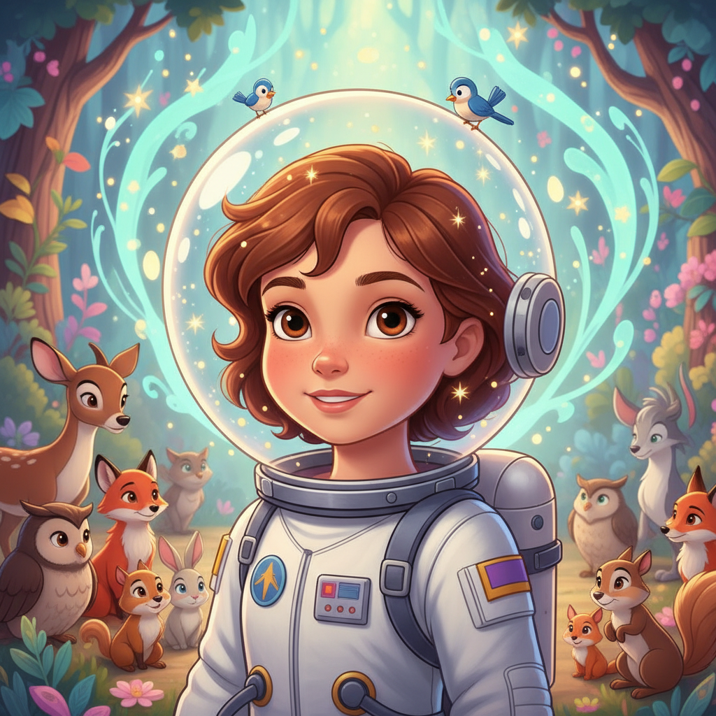 Manuela era una niña astronauta con una melena castaña brillante y ojos marrones llenos de curiosidad. Vivía en una estación espacial que orbitaba la Tierra, un lugar lleno de maravillas tecnológicas y vistas cósmicas impresionantes. Desde su ventana, podía ver la curvatura azul del planeta y las incontables estrellas parpadeando en la oscuridad. Aunque amaba su trabajo de explorar el universo, había algo que la hacía sentir un poco sola a veces: la ausencia de sus amigos peludos de la Tierra. Un día, mientras calibraba el telescopio principal, Manuela sintió una extraña vibración en la consola. Pensó que era una avería, pero pronto se dio cuenta de que era algo mucho más fascinante. Una pequeña luz parpadeante apareció en la pantalla, y para su sorpresa, se transformó en la cara de su perrito, Max, con su cola moviéndose enérgicamente. ¡Era imposible, pero sucedía! "¡Max! ¿Eres tú?", exclamó Manuela, con los ojos bien abiertos. La cara de Max se rió, y luego, apareció su gata, Luna, bostezando perezosamente. Manuela se dio cuenta de que algo extraordinario había ocurrido. Su habilidad secreta, su superpoder, que le permitía hablar con los animales, se había extendido hasta el espacio. Durante las siguientes semanas, Manuela pasó horas hablando con sus mascotas. Max le contaba sus aventuras persiguiendo ardillas en el jardín, y Luna le narraba sus siestas bajo el sol. Descubrió que sus amigos animales tenían mucho que decir y compartir, y que su capacidad para entenderlos la hacía sentirse conectada con su hogar de una manera nueva y mágica. Su entrenamiento como astronauta la había llevado a las estrellas, pero su superpoder la conectaba más profundamente con el amor y la vida que había dejado atrás. Se dio cuenta de que, sin importar cuán lejos viajara, siempre tendría una forma de comunicación especial con aquellos a quienes quería.