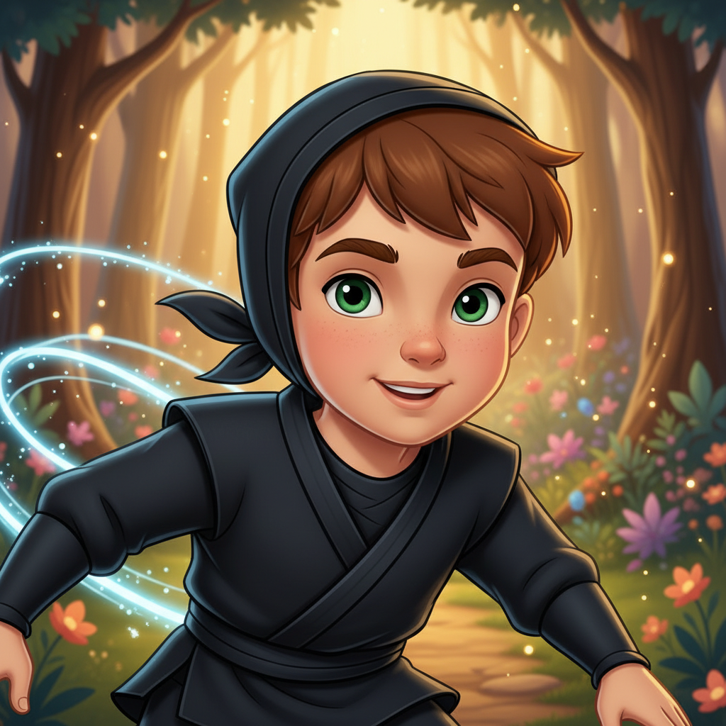 Brayan era un niño extraordinario, con cabello castaño tan revuelto como una brisa juguetona y ojos verdes que brillaban con la inteligencia de un pequeño búho. Su piel clara era como la nieve recién caída, pero su corazón ardía con la energía de mil soles. Desde muy pequeño, descubrió que poseía un don increíble: una super velocidad que lo hacía parecer un borrón de color cuando corría. Podía cruzar el jardín en un parpadeo, atrapar mariposas antes de que se dieran cuenta de su presencia y hacer sus tareas en segundos, lo que le dejaba mucho tiempo para explorar. Vivía en una pequeña aldea rodeada de frondosos árboles y riachuelos cristalinos, un lugar donde todos se conocían y se cuidaban mutuamente. Brayan, a pesar de su increíble habilidad, era un niño humilde y bondadoso. Siempre usaba su velocidad para ayudar a los demás: llevaba mensajes urgentes, recolectaba frutos caídos antes de que se echaran a perder o incluso ayudaba a los ancianos a cruzar el camino, ¡todo antes de que pudieran decir 'gracias'! Su entrenamiento como ninja no era solo para la destreza física; también le enseñaba sobre la paciencia, la disciplina y la importancia de usar sus habilidades con sabiduría. Su maestro, el venerable Sensei Hiroshi, siempre le recordaba que la velocidad sin propósito era tan inútil como un río sin cauce. Brayan practicaba sus movimientos con agilidad, deslizándose entre las sombras y apareciendo en lugares inesperados, siempre con una sonrisa. Un día, mientras corría por el bosque a una velocidad vertiginosa, notó algo inusual. En un claro soleado, donde nunca antes había estado, encontró una pequeña y extraña semilla. Brillaba con un suave resplandor dorado y parecía vibrar con una energía propia. Curioso, Brayan la recogió con cuidado, sintiendo una calidez reconfortante al tocarla. Intrigado por su descubrimiento, Brayan decidió llevar la semilla a su hogar. La guardó en su bolsillo y continuó sus aventuras, pero no podía dejar de pensar en la misteriosa semilla dorada. Sentía que era algo especial, algo que requería su atención y cuidado particular. La posibilidad de un nuevo misterio lo llenaba de emoción.