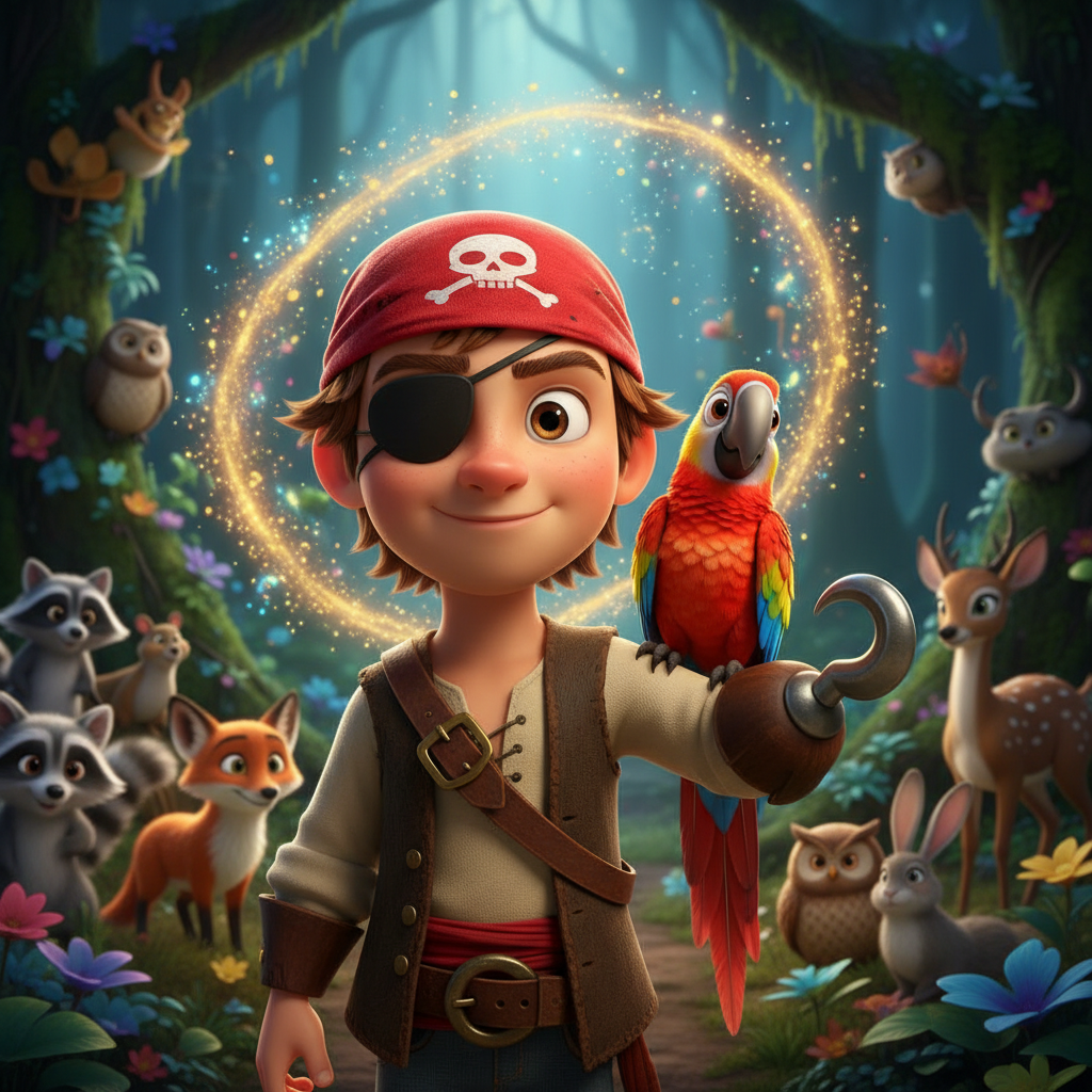 La lección que Teo aprendió en la Isla Sonriente fue profunda y transformadora. Comprendió que su don para hablar con los animales no era solo una curiosidad o una herramienta para la aventura pirata, sino un puente hacia una comprensión más profunda del mundo natural y sus necesidades. Cada criatura, desde el más pequeño insecto hasta el más grande mamífero marino, tenía algo valioso que aportar y compartir. Al compartir las semillas, Teo no solo curaba la tierra, sino que también sembraba la semilla de la esperanza en los corazones de las personas. Veía cómo comunidades que antes luchaban por sobrevivir florecían gracias a la generosidad de la naturaleza, y cómo la cooperación entre humanos y animales se volvía algo natural y esperado, en lugar de una excepción. El capitán del "Viento Audaz", al principio escéptico sobre esta nueva misión, se convirtió en uno de los mayores defensores de Teo. Había visto de primera mano la alegría y la prosperidad que traían las acciones de Teo, y se dio cuenta de que la verdadera riqueza de un capitán pirata no estaba en sus cofres de oro, sino en el bienestar de su tripulación y en el impacto positivo que podían tener en el mundo. Teo nunca olvidó la gratitud del delfín ni la advertencia del murciélago. Continuó su viaje, navegando con el "Viento Audaz" como un faro de bondad y curación. Cada vez que se encontraba con un animal en apuros, lo ayudaba, y a cambio, a menudo recibía consejos o información valiosa que lo guiaba en sus expediciones para restaurar la naturaleza y llevar alegría a quienes la necesitaban. Así, el joven pirata Teo, con su cabello castaño alborotado y su corazón noble, se convirtió en una leyenda. Su historia se convirtió en un recordatorio para todos de que los mayores tesoros de la vida no se encuentran en el oro ni en las joyas, sino en la conexión con la naturaleza, en la compasión hacia los demás y en el coraje de usar nuestros dones únicos para hacer del mundo un lugar más verde y feliz. La aventura de Teo demostró que incluso el pirata más joven puede ser el guardián más valiente de la vida.