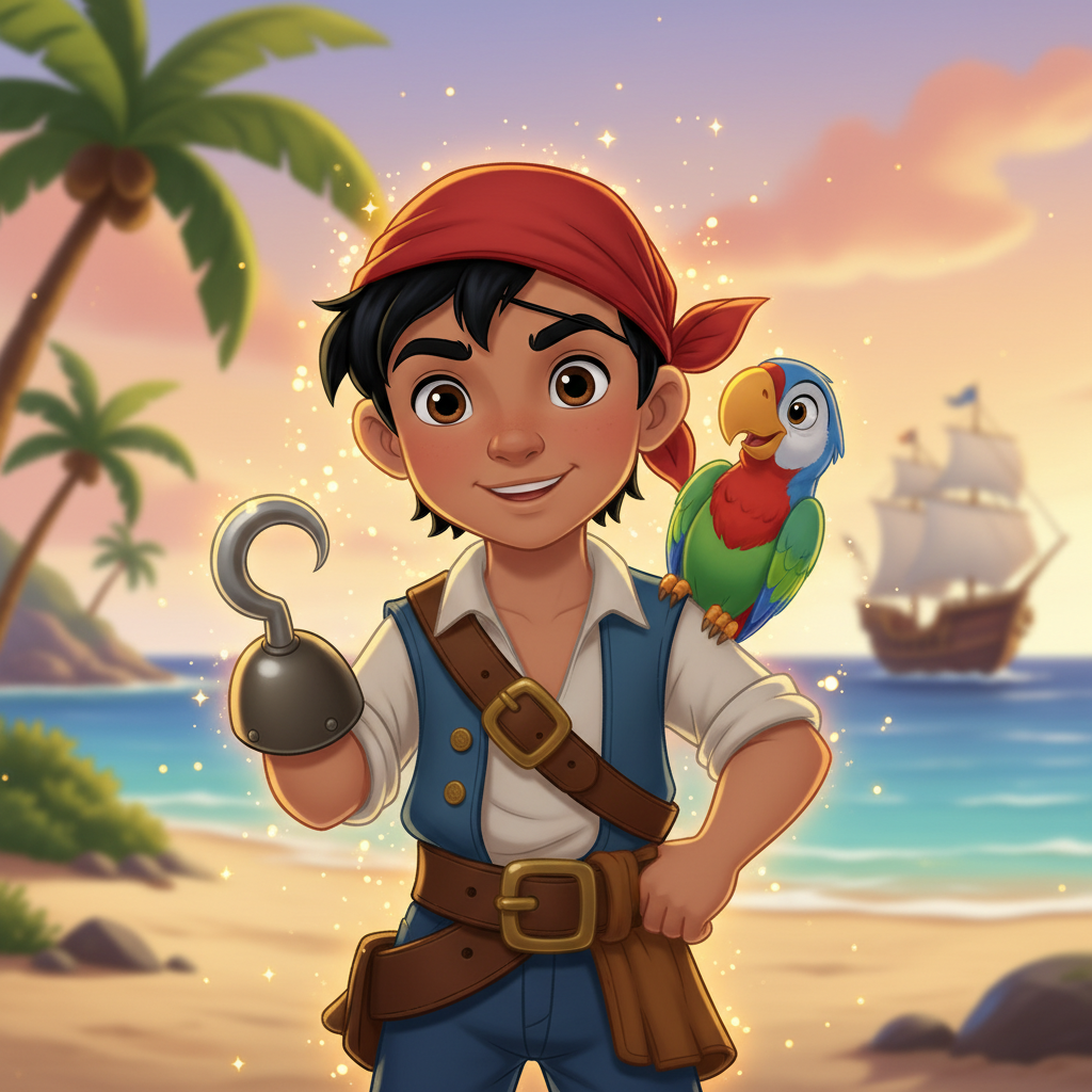 En la pequeña y bulliciosa isla de Tortuga, vivía un joven pirata llamado Álvaro. Álvaro no era un pirata cualquiera; poseía un secreto asombroso: una fuerza capaz de mover montañas y levantar anclas con una sola mano. Su cabello negro como el carbón caía sobre sus ojos marrones y curiosos, mientras su piel, de un tono medio bañado por el sol, reflejaba sus aventuras. A pesar de su juventud, Álvaro era conocido en toda la isla por su valentía y su corazón noble, siempre dispuesto a ayudar a quienes lo necesitaban, fuera pirata o pescador.