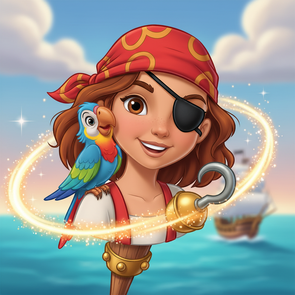 En la colorida isla de Coralina vivía una niña audaz llamada María. María no era una niña cualquiera, era una pirata en entrenamiento, con el cabello castaño alborotado por el viento salado y unos ojos marrones llenos de picardía. Su piel, bronceada por el sol tropical, brillaba con cada sonrisa. Desde muy pequeña, María soñaba con surcar los mares en busca de tesoros escondidos y vivir grandes aventuras. Lo que hacía a María verdaderamente especial era su increíble superpoder: ¡la super velocidad! Podía correr más rápido que el viento, saltar sobre las olas como si fueran pequeños escalones y recoger objetos en un abrir y cerrar de ojos. Sus amigos de la isla siempre se asombraban de su agilidad, y a menudo la llamaban 'la brisa pirata'. Un día, mientras jugaba en la playa, María vio una botella flotando cerca de la orilla. Dentro, había un pergamino. Con un par de zancadas veloces, María alcanzó la botella antes de que la marea se la llevara. Desenrolló el pergamino con sus dedos ágiles y leyó un mapa antiguo. ¡Era un mapa del tesoro que prometía riquezas inimaginables! El mapa indicaba que el tesoro estaba en la Isla del Mono Sonriente, un lugar conocido por sus acertijos y guardianes juguetones. María, emocionada, se preparó para su primera gran expedición. Empacó un pequeño hatillo con agua, galletas y su brújula mágica, y le prometió a su abuela que regresaría pronto con algo especial para ella. Con su espíritu aventurero y su super velocidad, María se dirigió al muelle. Allí la esperaba su pequeño bote pirata, el 'Velero Veloz'. Respiró hondo el aire salado, sintiendo la emoción burbujear en su pecho. ¡La aventura la llamaba y ella estaba lista para responder!