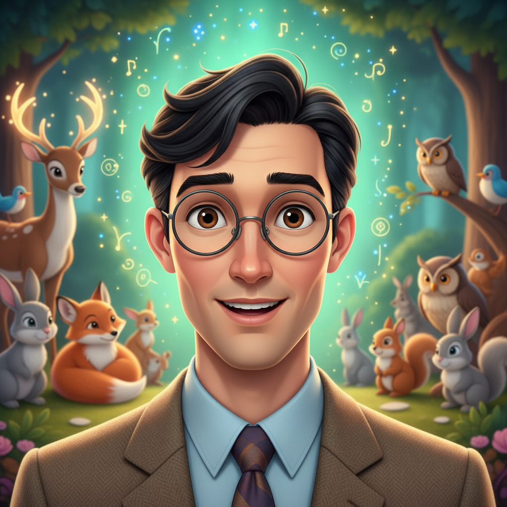 En el corazón de un pueblo pintoresco vivía Adrian, un profesor con un don extraordinario. Su cabello era tan negro como la noche más profunda, sus ojos brillaban con la calidez de la tierra fértil y su piel era tan clara como la luna en una noche despejada. Adrian era un hombre amable y paciente, amado por sus estudiantes, pero guardaba un secreto maravilloso: podía comprender y hablar con todos los animales. Desde el gorrión más pequeño hasta el ciervo más majestuoso, todos compartían sus pensamientos y sentimientos con él.