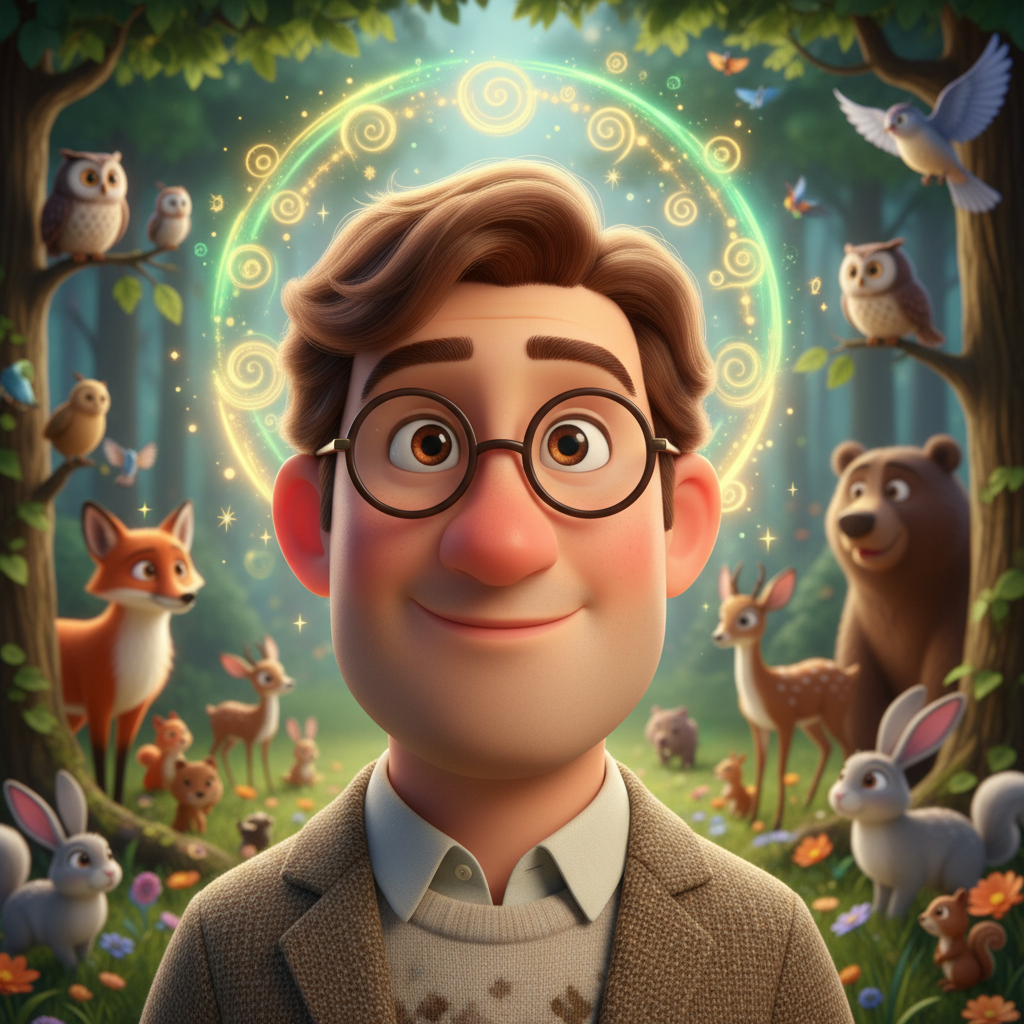 En el corazón de un pueblo pintoresco, vivía Bedepé, un profesor cuyo cabello castaño y ojos marrones brillaban con una bondad innata. Su piel clara contrastaba con la vivacidad de sus lecciones en la escuela local. Pero lo que hacía a Bedepé realmente especial no eran sus conocimientos académicos, sino un don extraordinario: la habilidad de comprender y hablar con todos los animales. Los pájaros le contaban los chismes del amanecer, los perros le compartían sus alegrías y tristezas, e incluso los insectos más pequeños le susurraban secretos del suelo. Un día, mientras paseaba por el bosque cercano, Bedepé escuchó un lamento inusual. Era un sonido triste y profundo, que parecía provenir de lo más recóndito de la arboleda. Guiado por la angustia del animal, se adentró entre los árboles centenarios, su corazón lleno de preocupación. Los árboles parecían susurrarle advertencias, pero su deseo de ayudar era más fuerte que cualquier temor. Finalmente, llegó a un claro donde encontró a un viejo ciervo con una pata atrapada en una trampa de cazador. El ciervo, con sus ojos llenos de dolor, lo miró con una mezcla de desesperación y esperanza. Bedepé se acercó con calma, hablándole en voz baja y reconfortante, asegurándole que no le haría daño y que estaba allí para ayudarlo. El ciervo, sorprendentemente, pareció entender sus palabras y relajó su cuerpo tembloroso. Con cuidado y precisión, Bedepé examinó la trampa. Era antigua y estaba oxidada, pero aún así era peligrosa. Trabajó con paciencia, utilizando una rama fuerte para intentar levantar el mecanismo lo suficiente como para liberar al ciervo. Cada movimiento era calculado, cada suspiro contenía la esperanza de que pronto el animal estaría libre y a salvo. El bosque entero parecía contener la respiración, expectante. Después de varios minutos de esfuerzo, Bedepé logró abrir la trampa lo suficiente. El ciervo retiró su pata herida con un gemido ahogado y se puso de pie con dificultad. Miró a Bedepé con gratitud en sus ojos, inclinando la cabeza en un gesto de profundo agradecimiento. Bedepé, conmovido, acarició suavemente su hocico, sintiendo la calidez de su pelaje y la conexión que ambos compartían.